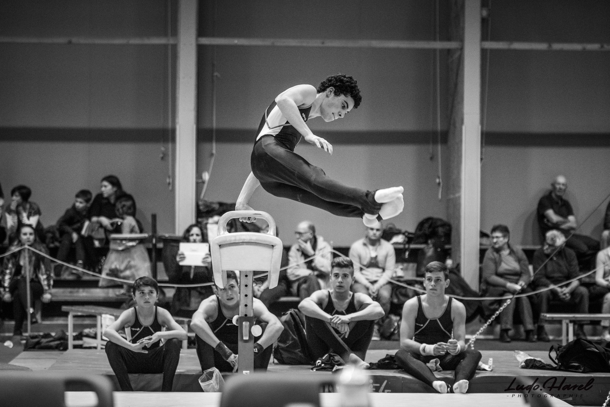 La gymnastique artistique masculine, se pratique sur 6 agrès : le saut, le sol, les arçons, les anneaux, les barres parallèles et la barre fixe.