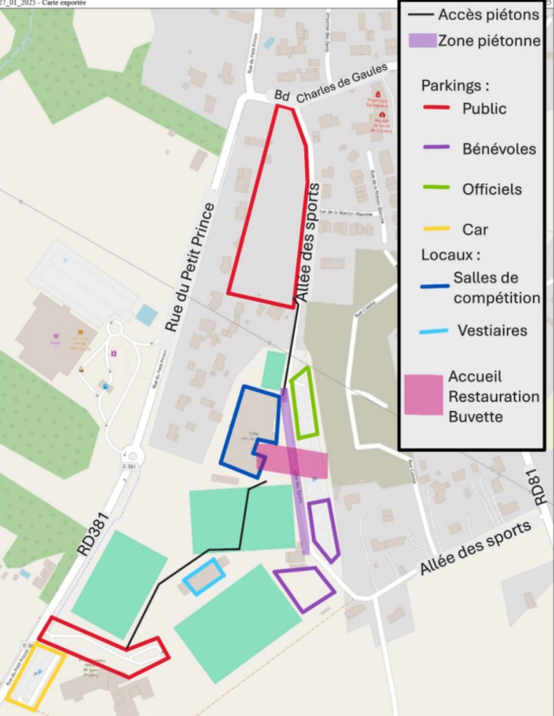 - Entrée au sein du complexe interdite au public. Seuls les officiels, responsables de clubs, juges, entraîneurs, gymnastes et bénévoles, étant inscrits sur liste, sont autorisés à y accéder. Les accompagnateurs et le public, pourront accéder aux salles de compétition par les accès “public”, présents à l’extérieur ;