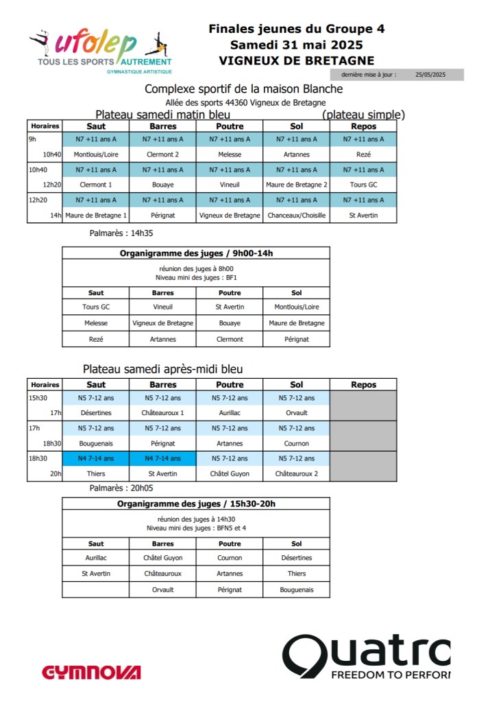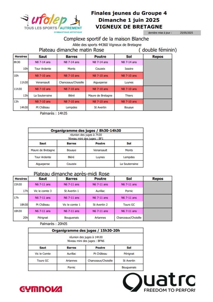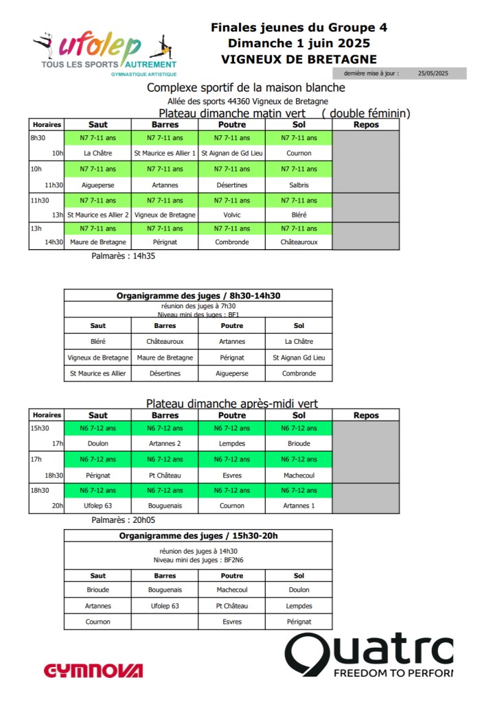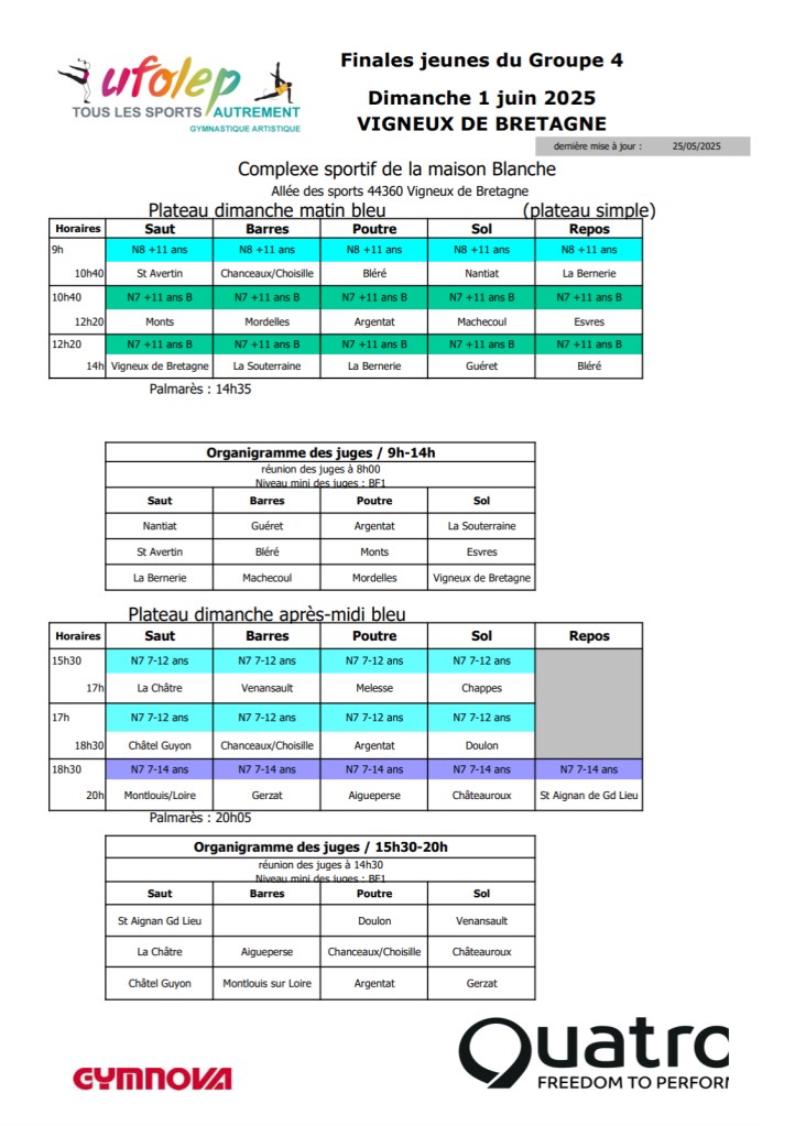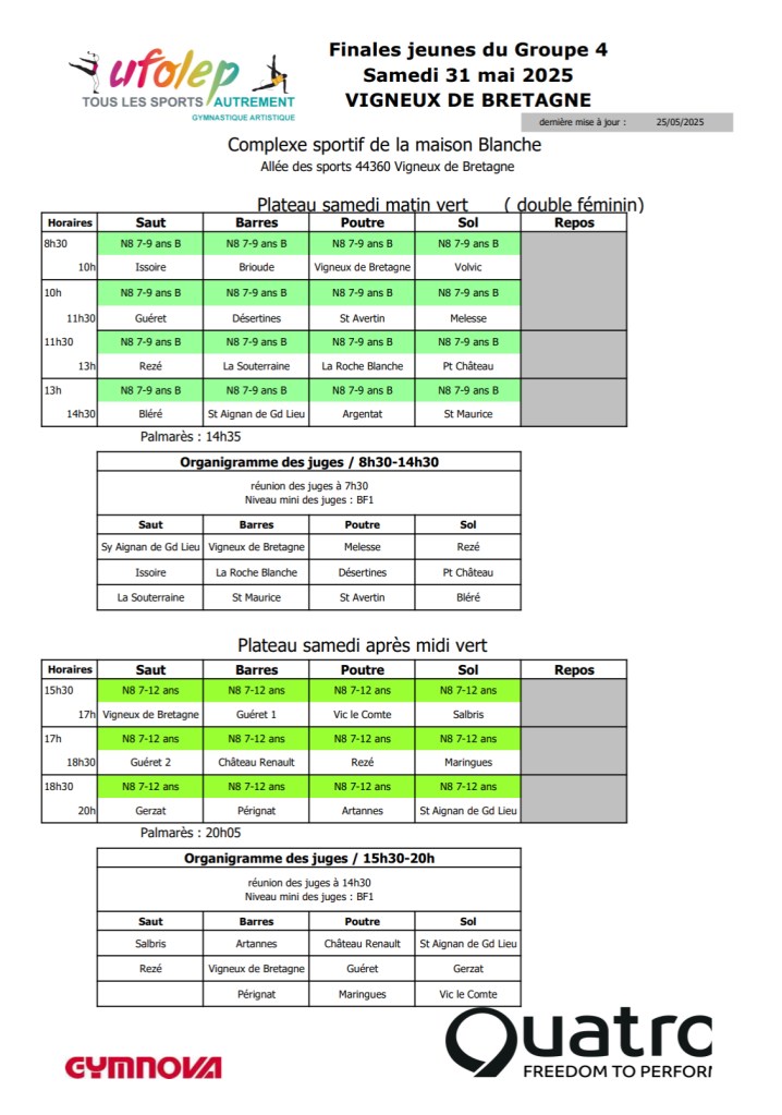 Retrouvez tout les résultats des équipes en direct sur le site internet « compétition.flipsalto » – « Finale J4 » – « Vigneux-de-Bretagne »